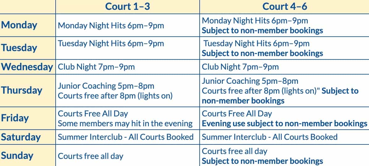 Non-member bookings may affect Court 4β6 availability β please check beforehand.βββββββ